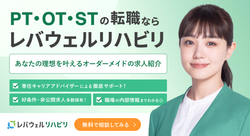 レバウェルリハビリは、人材紹介大手のレバウェル株式会社が運営する、PT・OT・STに特化した転職エージェントです。