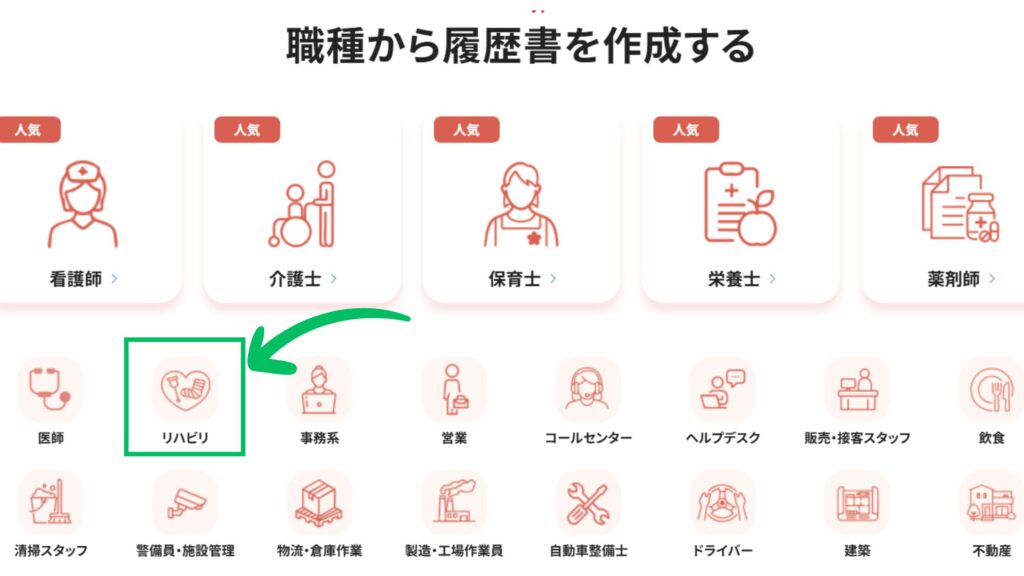 作業療法士の経歴やスキルに合わせた例文も豊富に用意されているため、